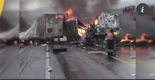 Versiones en el lugar apuntan que un conductor de un tráiler invadió carril y chocó de frente con otra unidad pesada.